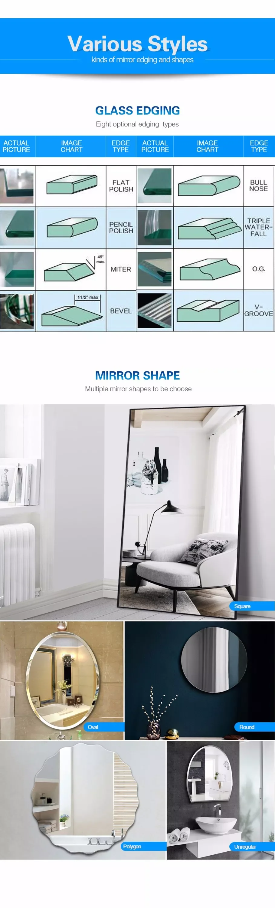 Glass edging | Flat polish, pencil polish, miter, bevel, O.G. bull nose and etc |
