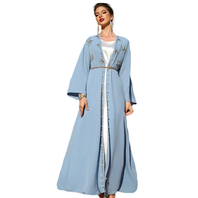 8 видов цветов из двух предметов мусульманский костюм Абая Дамы хиджаб Молитвенное платье Марокканская Исламская одежда свободный комплект для девочек