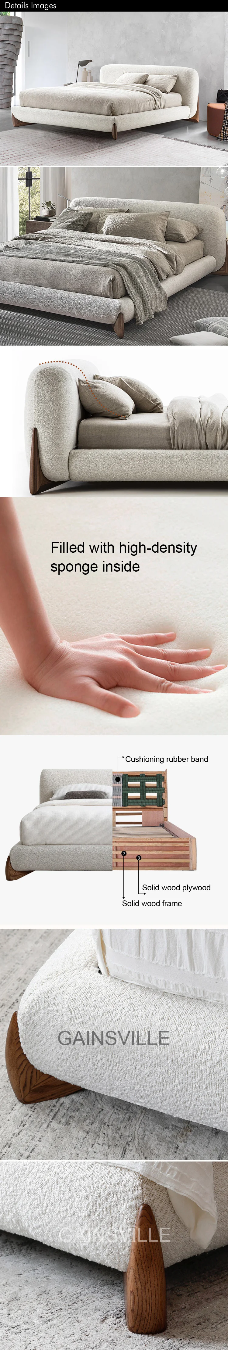 Upholstery | Fabric/Leather/Customized | Frame | Upholstered Wooden Bed Frame |