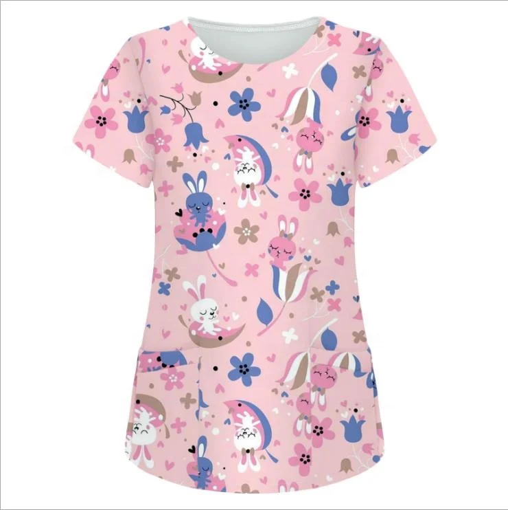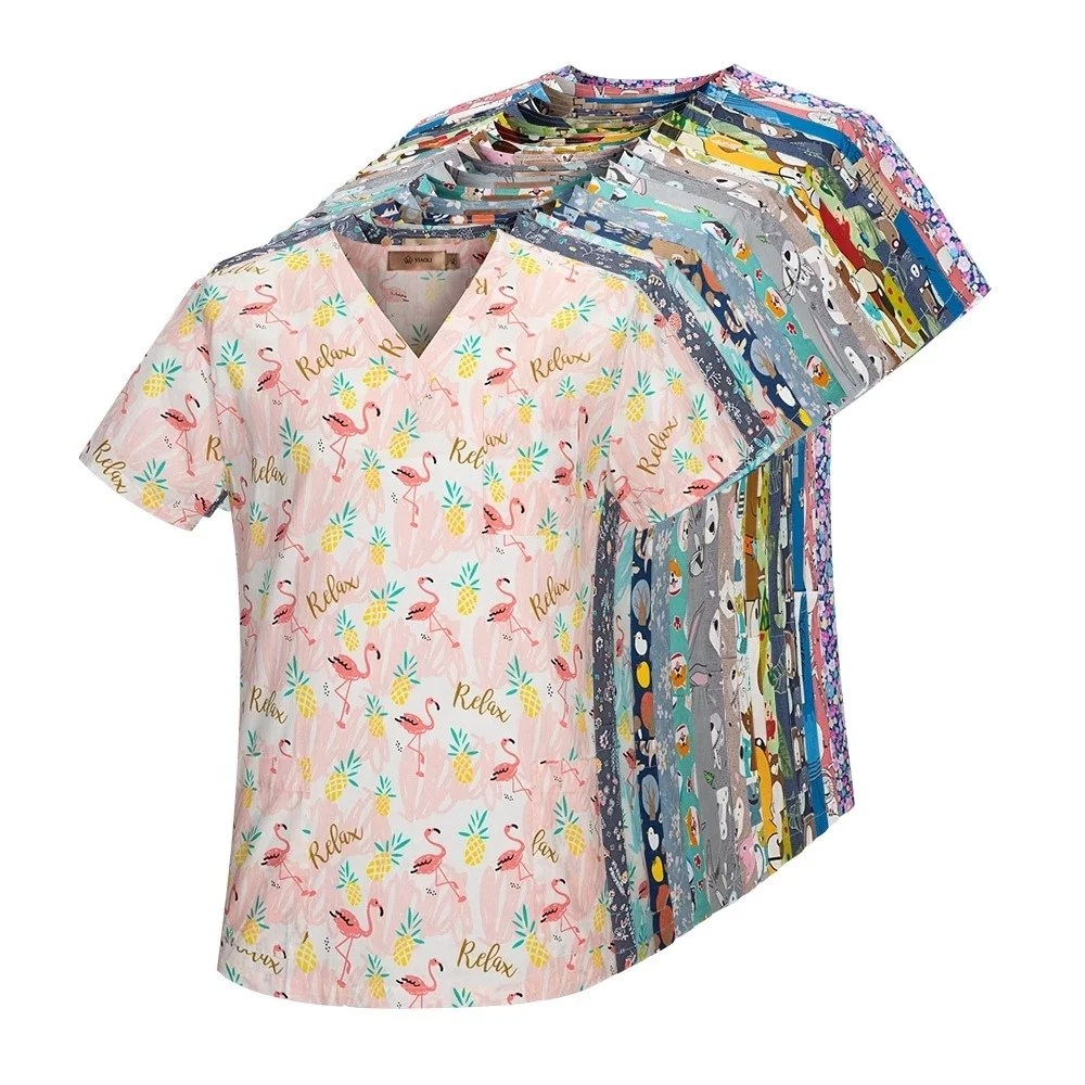 Распродажа недорогой Модный женский костюм разноцветный набор скрабов для бега топы с мультяшным принтом униформа медсестры