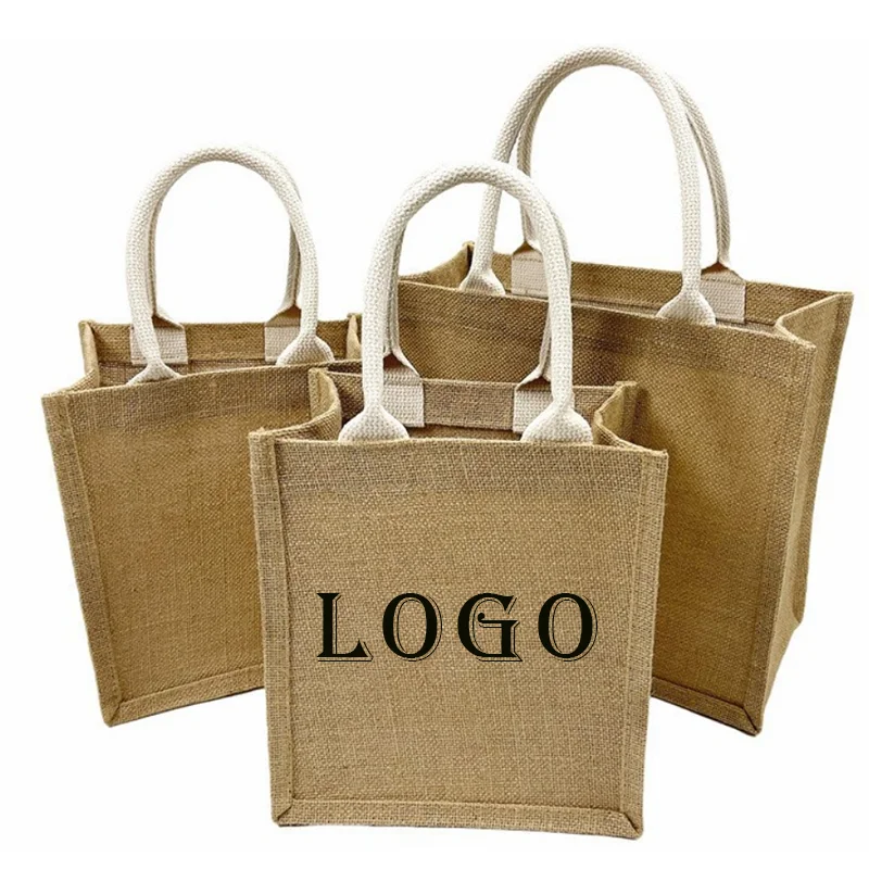 Экологически чистая переработанная Джутовая сумка для покупок большая с индивидуальным печатным логотипом