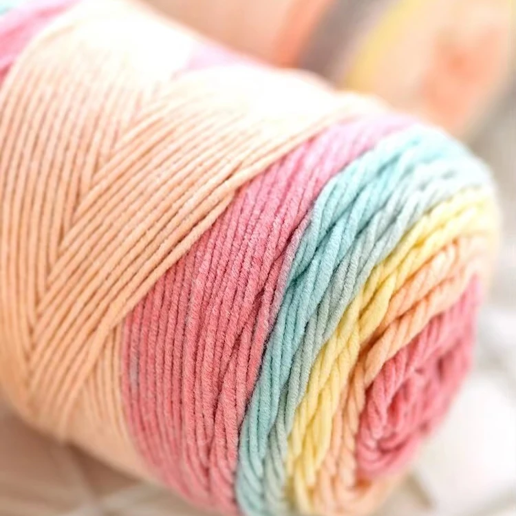 100gMedium толстая нить с нежной и мягкой текстурой тканые вязаные шапки перчатки шарф окрашенный Радужный хлопок 100 г 946,35 ₽ - 1 012,37 ₽