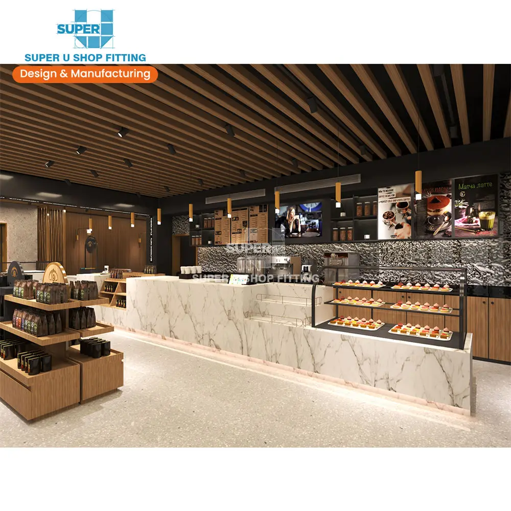 Роскошная мебель для кофейни, классное украшение для кофейного бара, решение для демонстрации, роскошное розничное коммерческое оборудование для магазина, дизайн интерьера для кафе