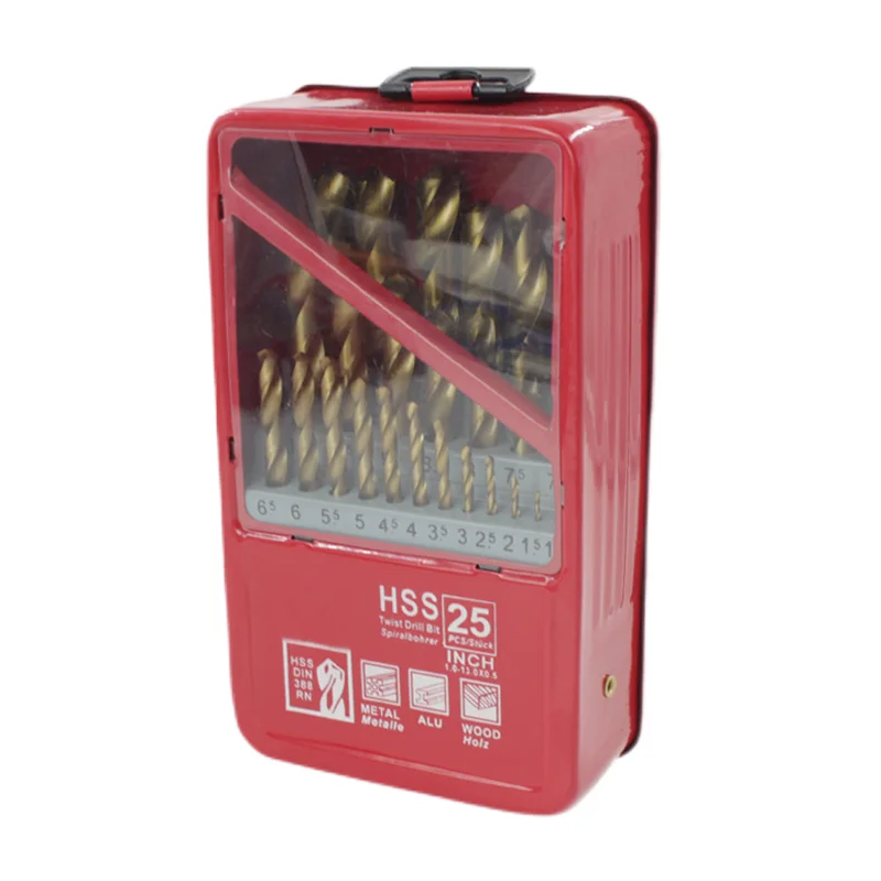 25 шт., набор сверл с металлическим корпусом