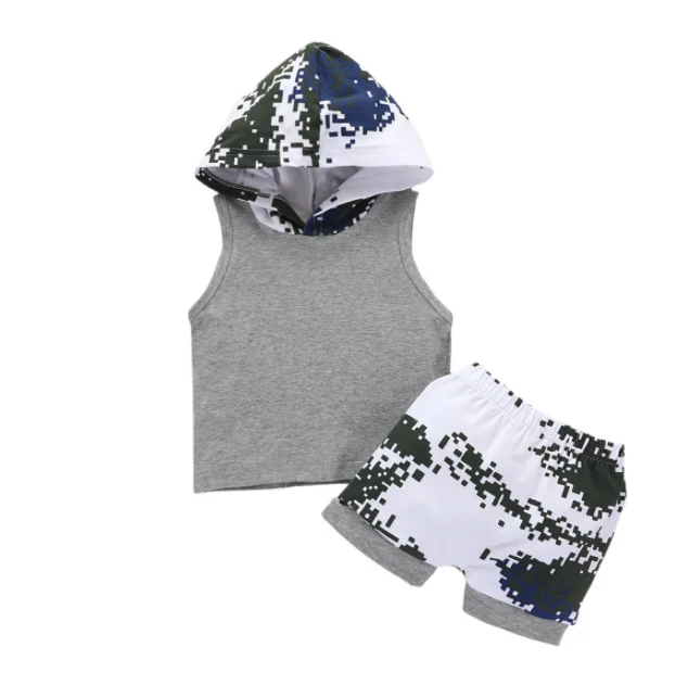 2 шт./компл. Детские бальные платья без рукавов топ и брюки-Капри одежда, хлопковый жилет с капюшоном, камуфляжные шорты, костюмы с шортами для маленьких мальчиков, одежда