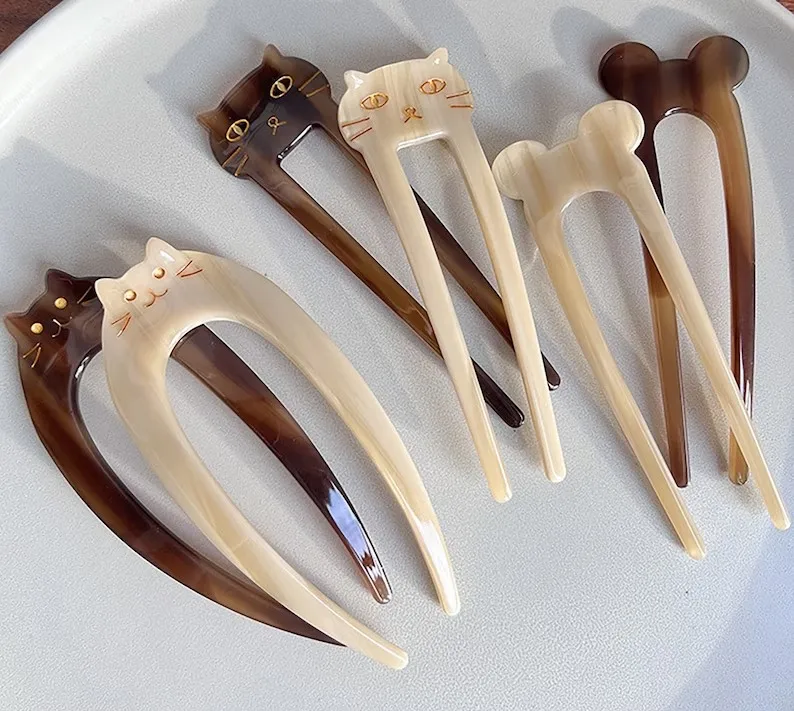 Высококачественные Симпатичные акриловые смолы оптом U-образные Белые коричневые заколки для волос и ловушка/Заказная заколка для волос из ацетата целлюлозы