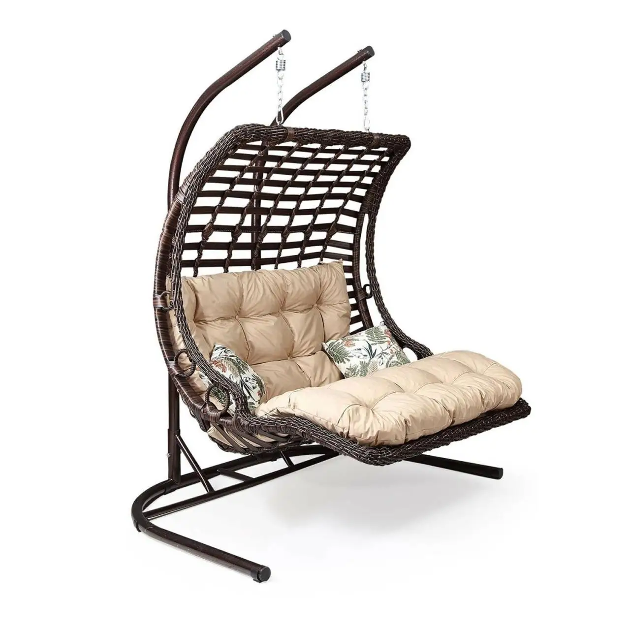 Стандартный уличный Плетеный Двухместный стул из ротанга с металлическим подставкой