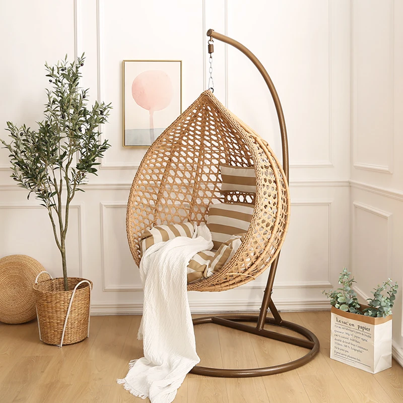 Уличная Мебель Патио Качели Подвесные яйцо качели коконы стул с металлической подставкой для помещений плетеное садовое кресло из ротанга