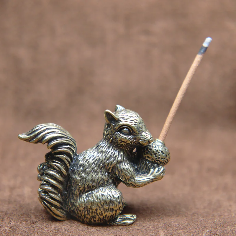 Антикварная маленькая медная Статуэтка с орнаментом в виде белки статуэтки латунные орехи чай держатель для ладана домашних животных настольное украшение