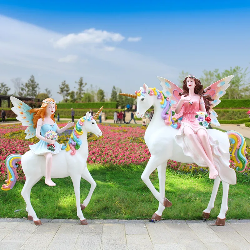 Карусель для катания лошади скульптура единорога/полимерная статуя единорога в натуральную величину/статуя из стекловолокна Сказочная