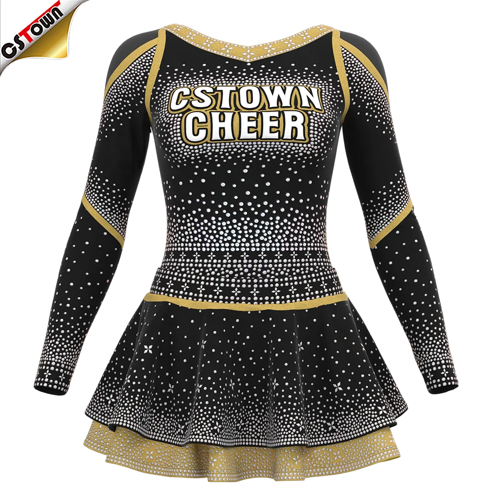 Normzl сексуальная униформа для девочек с длинным рукавом и принтом букв чирлидинга на заказ со стразами
