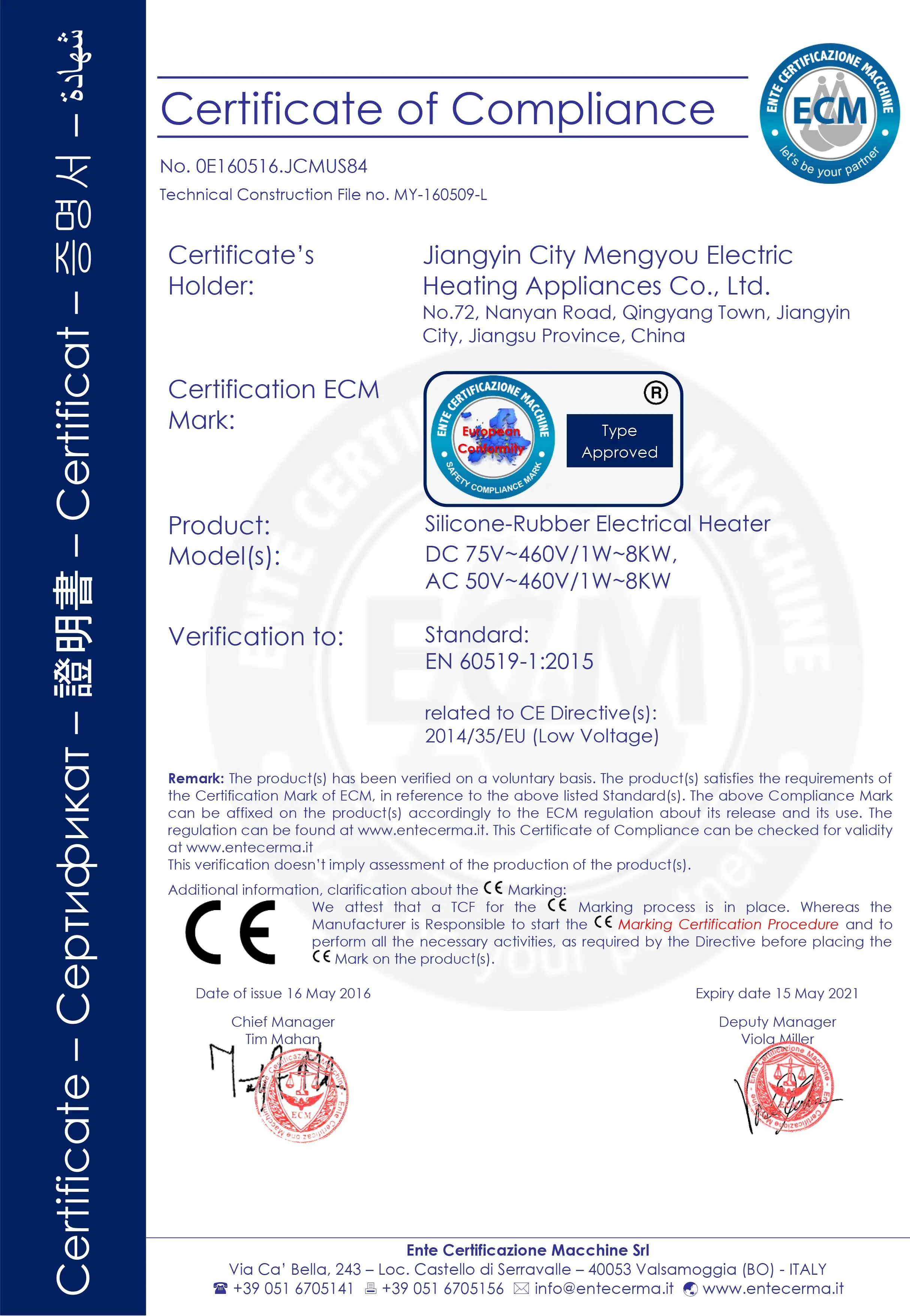 Our factory is located in Jiangyin City, Jiangsu Province, China .