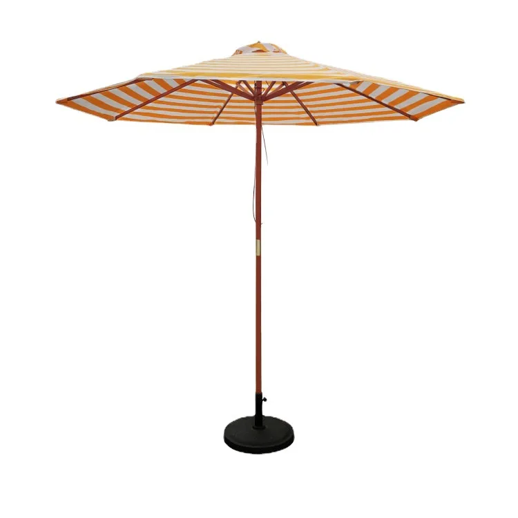 Желтый и белый полосатый деревянный пляжный зонт с веревкой, деревянный уличный зонт, Массивный деревянный столб, садовый сад, оптовая продажа
