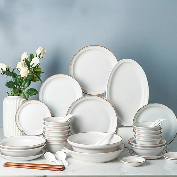Индивидуальный скандинавский светлый роскошный фарфоровый Обеденный набор белый керамический посуды для