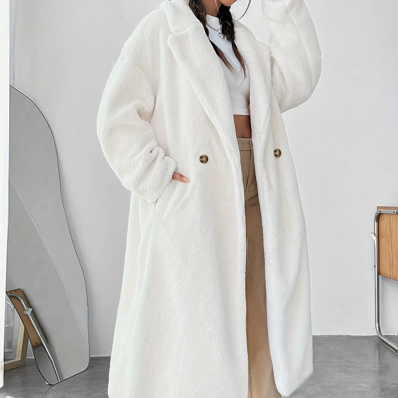 Пальто женское Шерстяное однобортное длинное зимнее пальто с лацканами и карманами 330,12 ₽ - 440,16 ₽