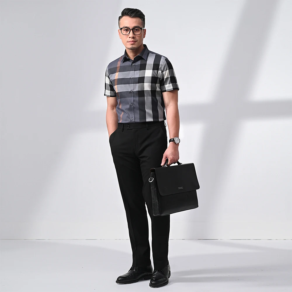 Мужская хлопковая рубашка с коротким рукавом