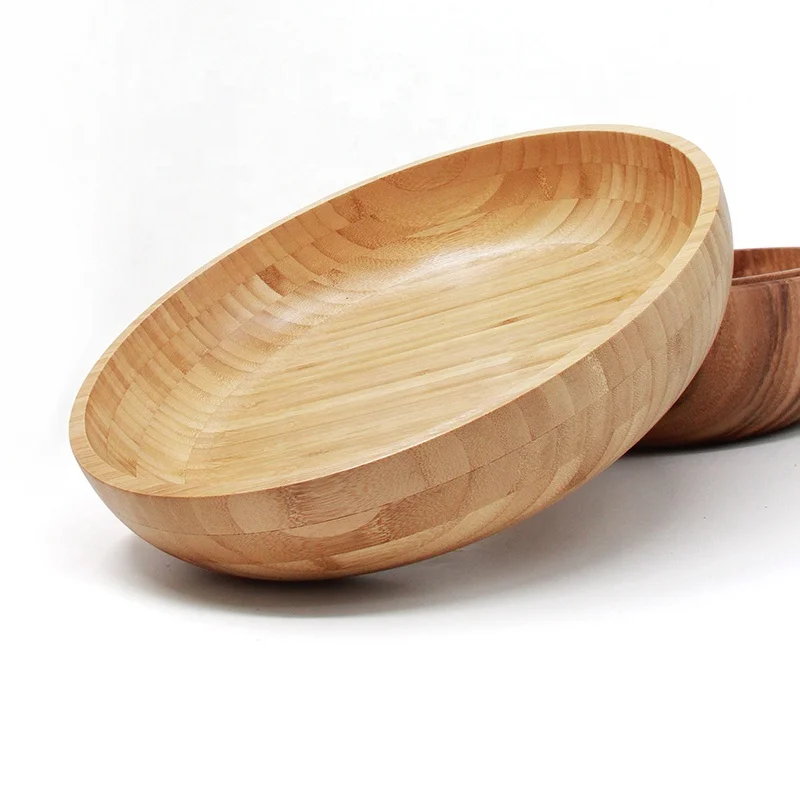 Оптовая продажа 100% Салатница из натурального бамбука ручная работа индивидуальная круглая миска для фруктового салата кухни