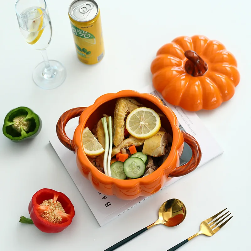 Оранжевая классическая керамическая суповая миска с красивыми крышками и держателем высокая безопасность высокое качество для декора Хэллоуина