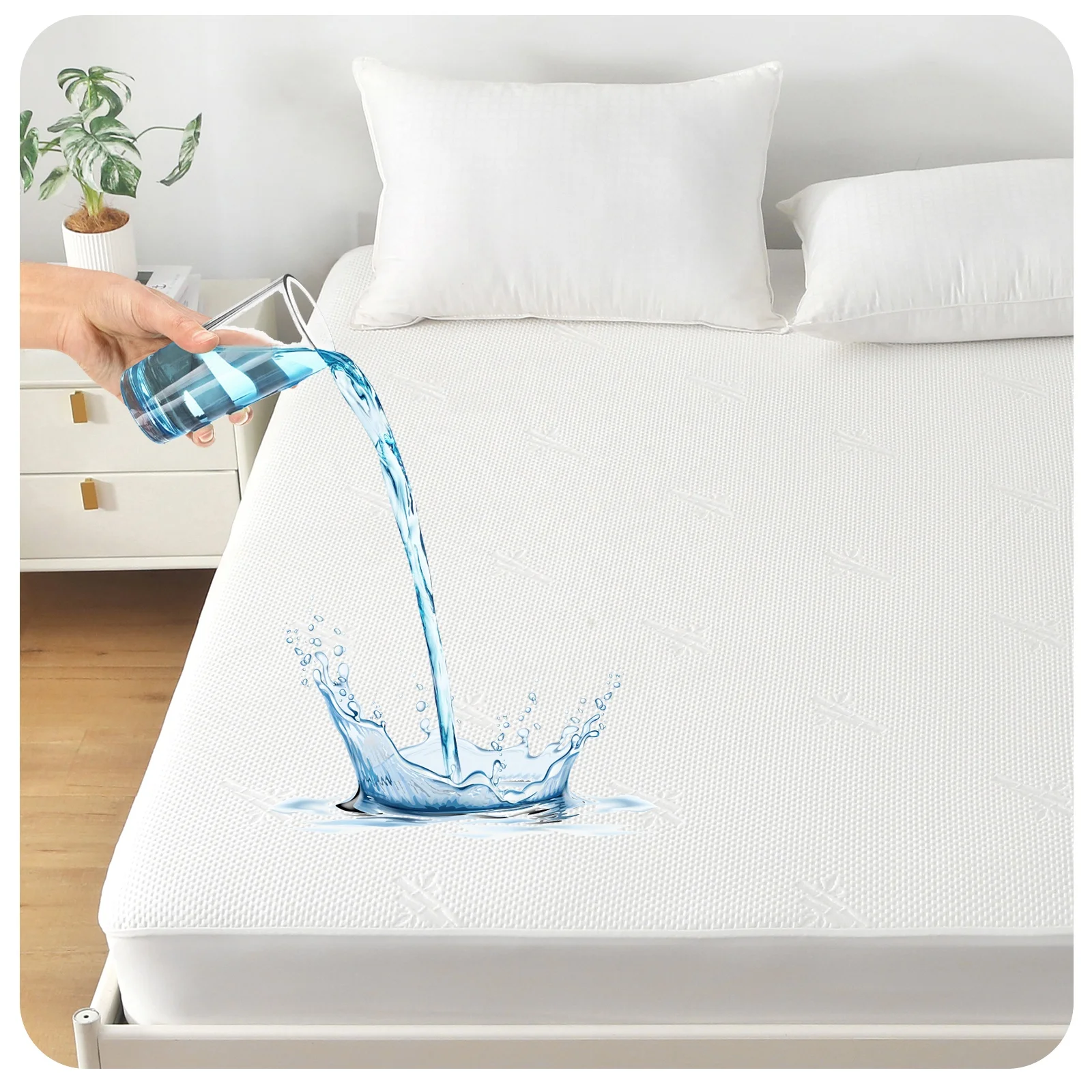Лидер продаж мягкая 3-слойная водонепроницаемая белая стеганая хлопковая простыня с 4 эластичными лентами в углу 646,93 ₽ - 975,88 ₽
