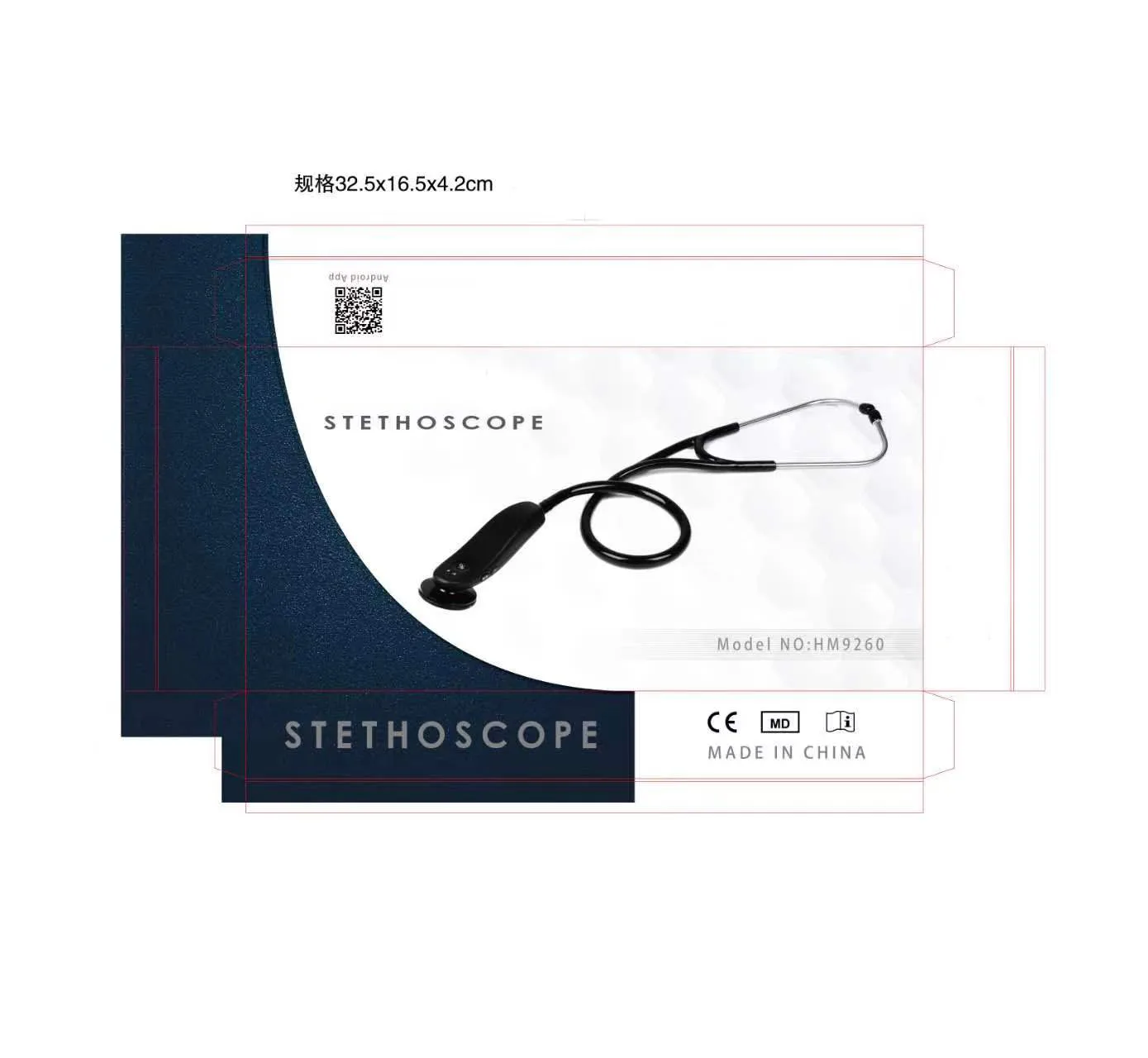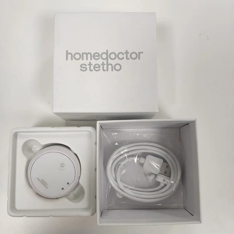 The box contains | Stethoscope • Magnetic USB charging cable • Instruction manual • The authorized 3.5mm Headphone (Optional) • USB – mini jack recording cable (Optional) The box content depends on the offer selected. |