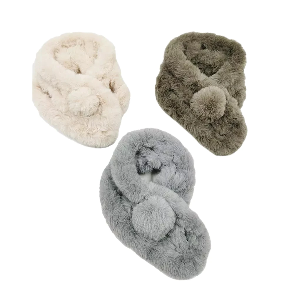 Горячая Распродажа, симпатичный теплый шарф из искусственного кроличьего меха с помпоном на шею, утолщенный зимний шарф из искусственного кроличьего меха