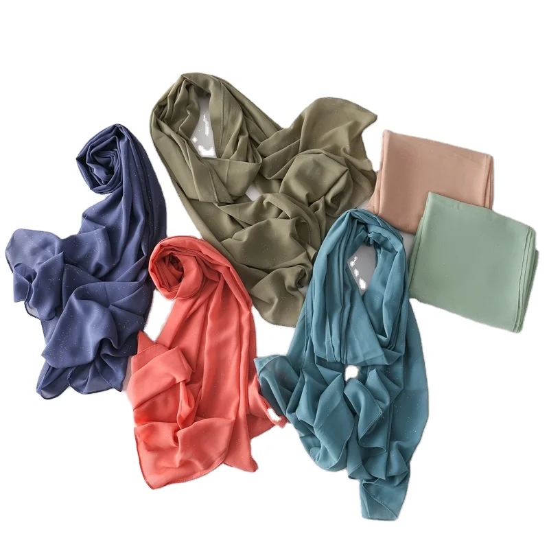 Оптовая продажа шарф из блестящей ткани шифоновый хиджаб женская мусульманская шаль шарфы пашмины хиджабы 197,45 ₽ - 241,96 ₽