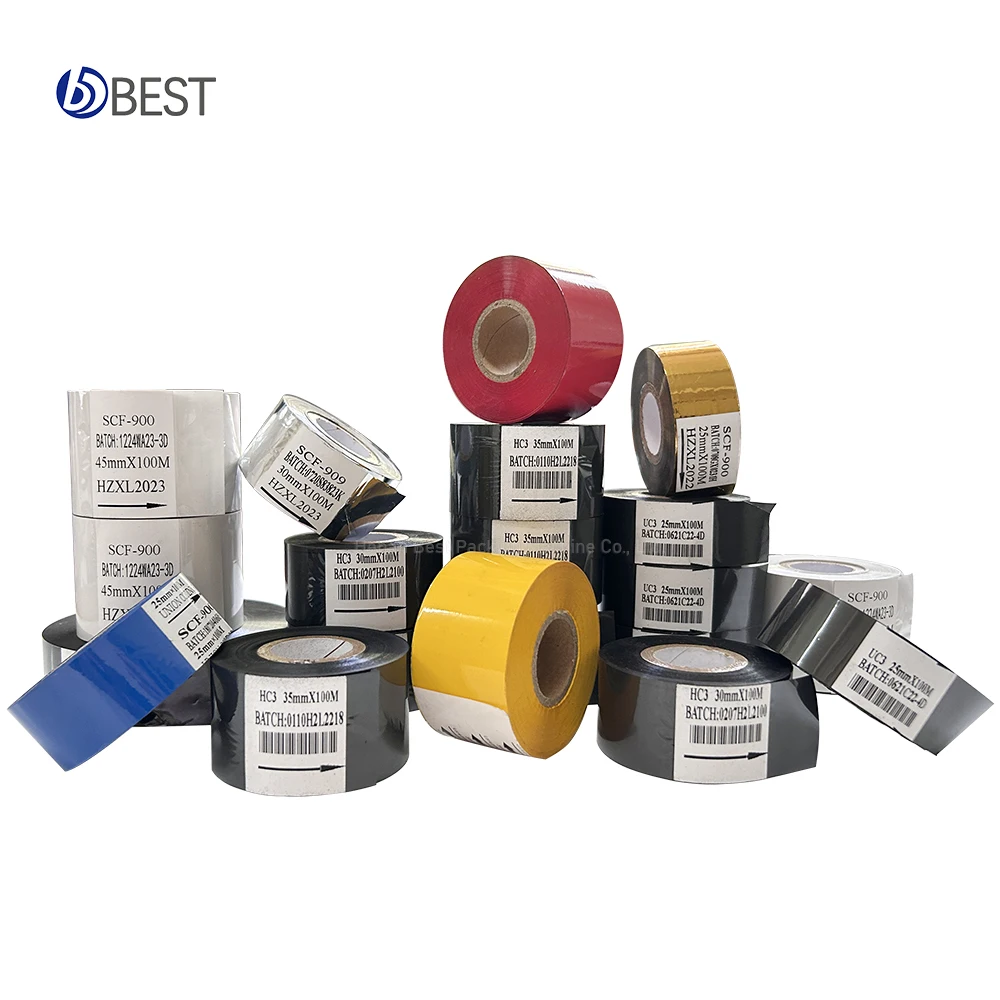 Hot stamping ribbon for batch code and production date working with coding machine, is used for printing marks on the packages of goods, including date, price and batch number etc. The product could be used on printing on plastic bags, cards, films, adhesive tapes, leather, and cartons. They have excellent adhesion and can print legible characters. Also it is scratch resistant.
