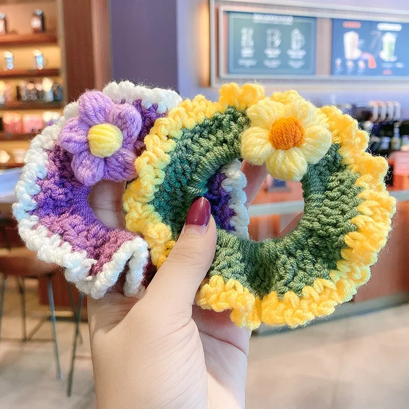 Заводская оптовая продажа Симпатичные вязаные кольца из толстой кишки для волос милые цветы бант Корейская версия Резиновая лента 0,83-0,87 $