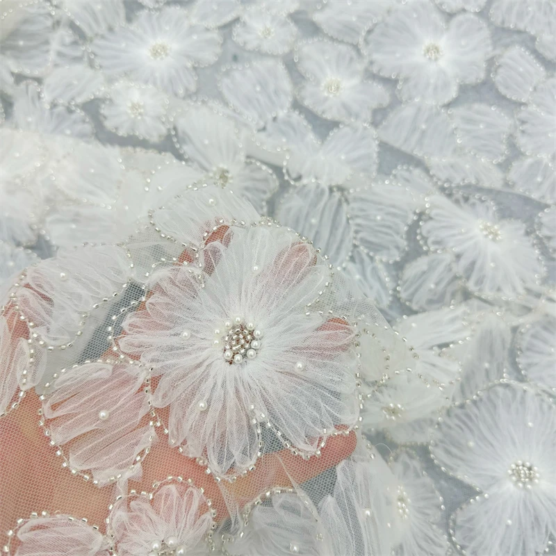 Новый 2024 роскошная вышитая бисером тюлеевая ткань с бахромой