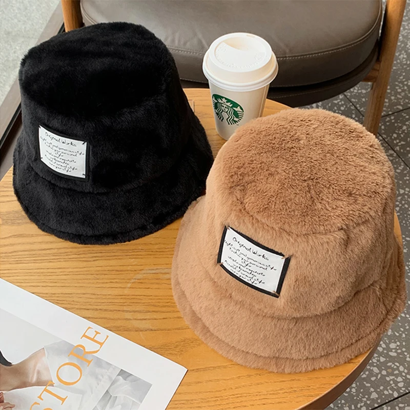 Большая пушистая теплая Рыбацкая шапка оптом однотонные черные зимние шапки из искусственного меха плюшевая зимняя Панама для женщин 212,88-665,53 ₽