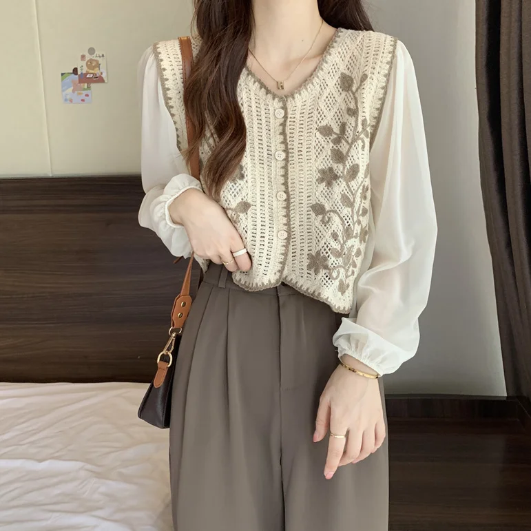 Оптовая продажа новая шифоновая трикотажная рубашка с длинным рукавом
