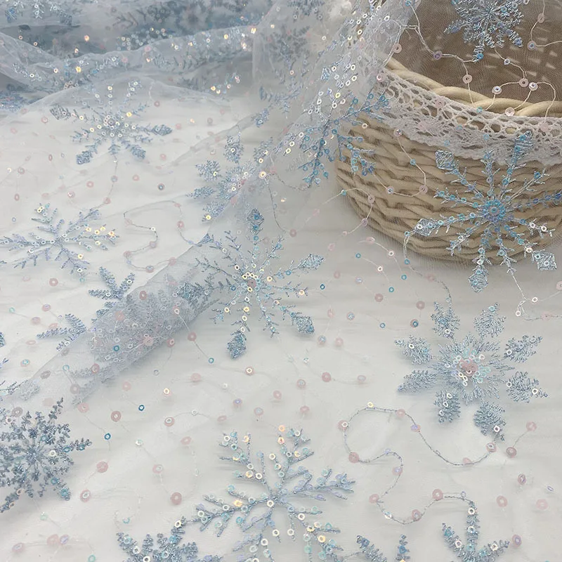 Ширина 135 см детская маскарадная одежда, нарядное голубое платье «Снежная кукурузных хлопьев Блестки бусины вышитый тюль ткань сетчатые кружева вышивки ткани для свадебного платья