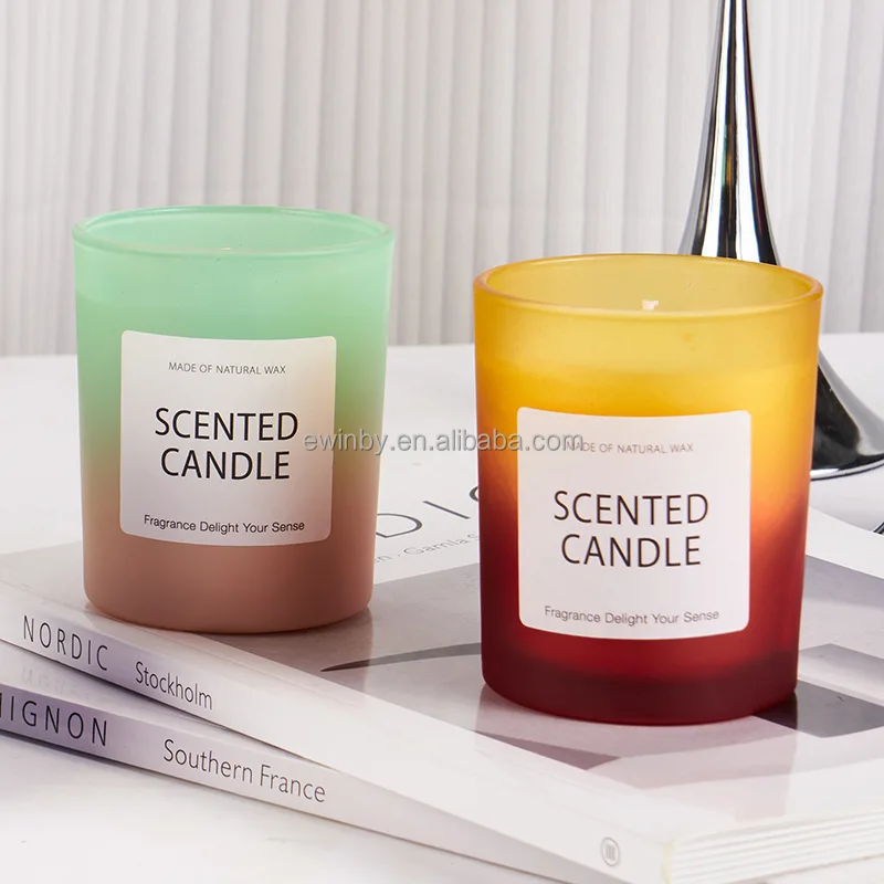 Стеклянные а03 359 г оптовая продажа градиентные цветные 100% хлопковые фитили ароматические свечи со стеклянной банкой для домашнего декора или подарков