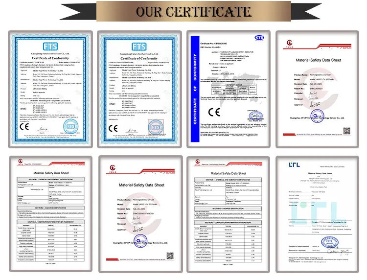 Certification | CE / EN 14764 / ROHS / PSE / MSDS / UN38.3 | ||||||||||