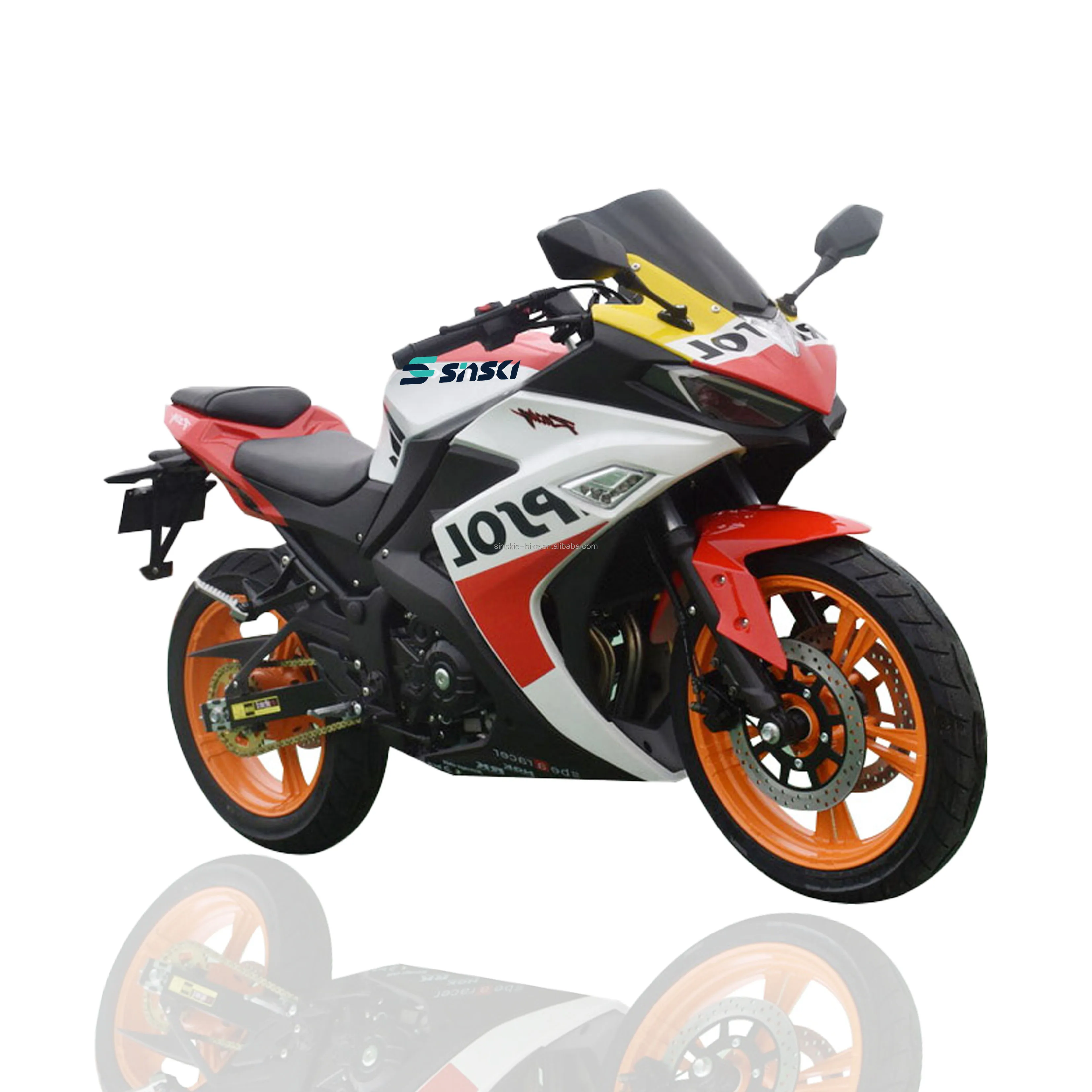 Product Attribute Description | On road version:Headlight with LED bulb、LED flowing water turn light、Taillight、license plate light、Rearview mirror、Horn、Digital Odometer L710mm Inverted front shock absorption、L240mm Monoshock for 140CC L260mm Monoshock for 150CC Steel Spoke wheels Quality Brand All-terrain Tyre:Fr.120/70-12,Rr.130/70-12 Quality Brand Fr. and Rr. disc brake NIBBI PE Carburater for 140CC CHOHO 428H Chain Alumunim alloy Uper triple clamp,steel lower triple clamp Alumuim alloy handlebar with luggage carrier Aluminum alloy Twinwall handlebar with Quality brand Anti-collision rubber |
