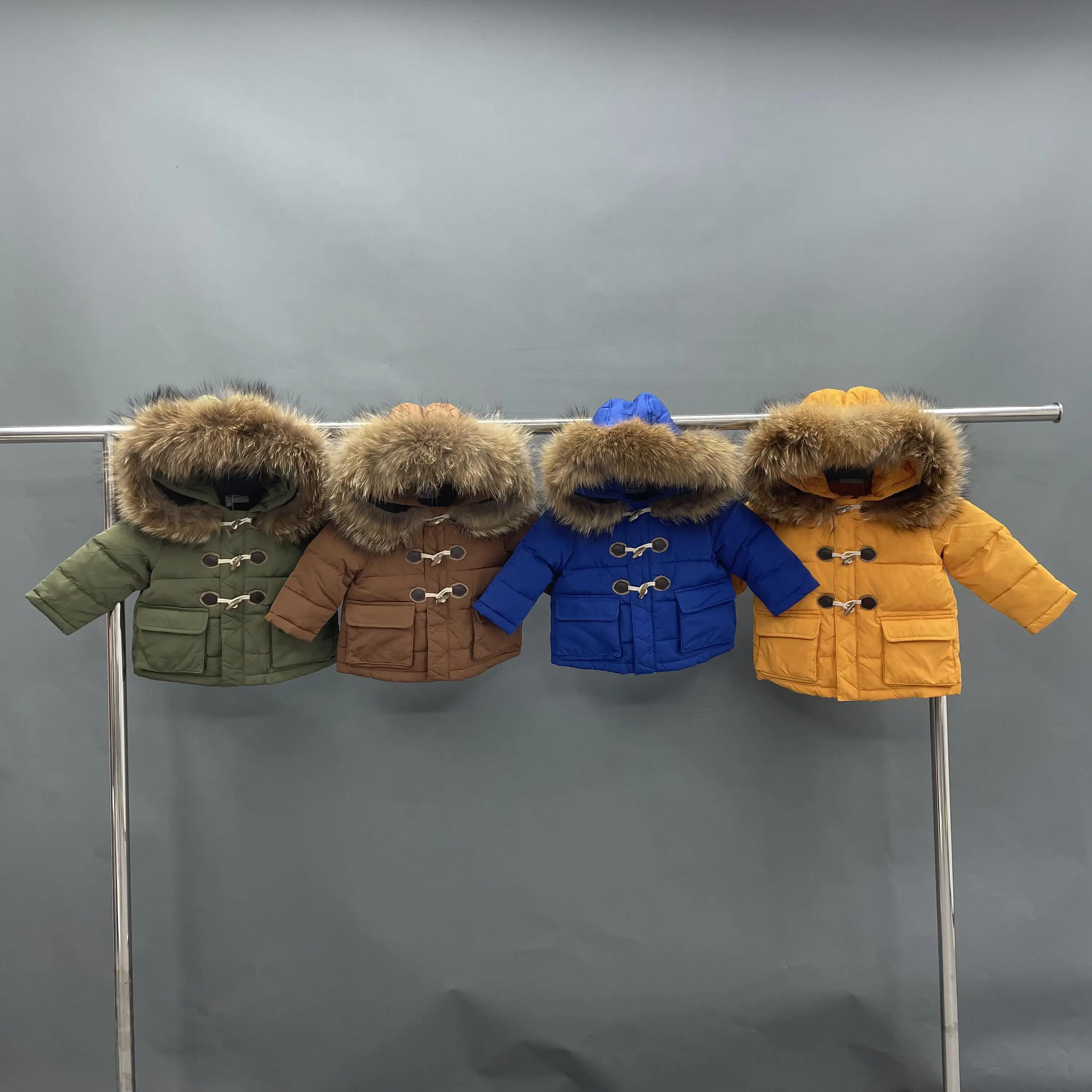 Осенне-зимнее Новое Детское пальто средней длины на толстом пуху с капюшоном из меха енота Детская пуховая куртка
