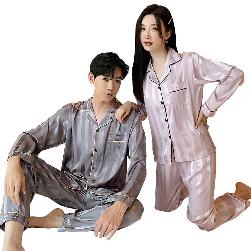 Комплект жаккардовой одежды для влюбленных и шелковая дизайнерская Пижама мужчин женщин пижама с длинным рукавом