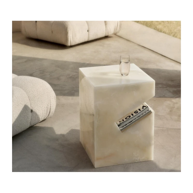 Простая практичная мраморная боковая сторона роскошный столик для гостиной белый мраморный из оникса