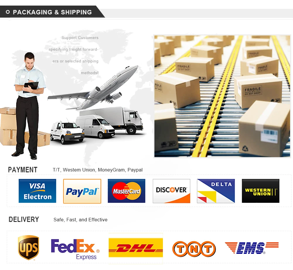 Q2:What is your payment terms? We are quite flexible with payment terms, we accept TT bank transfer, western union, Alibaba Trade Assurance,PayPal according to the order amount.