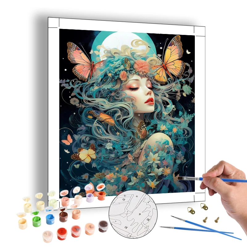 Портретная картина по номерам для взрослых, красивая бабочка, девушка, изысканные поделки, Сделай своими руками на заказ, Картина на холсте для домашнего декора, подарок