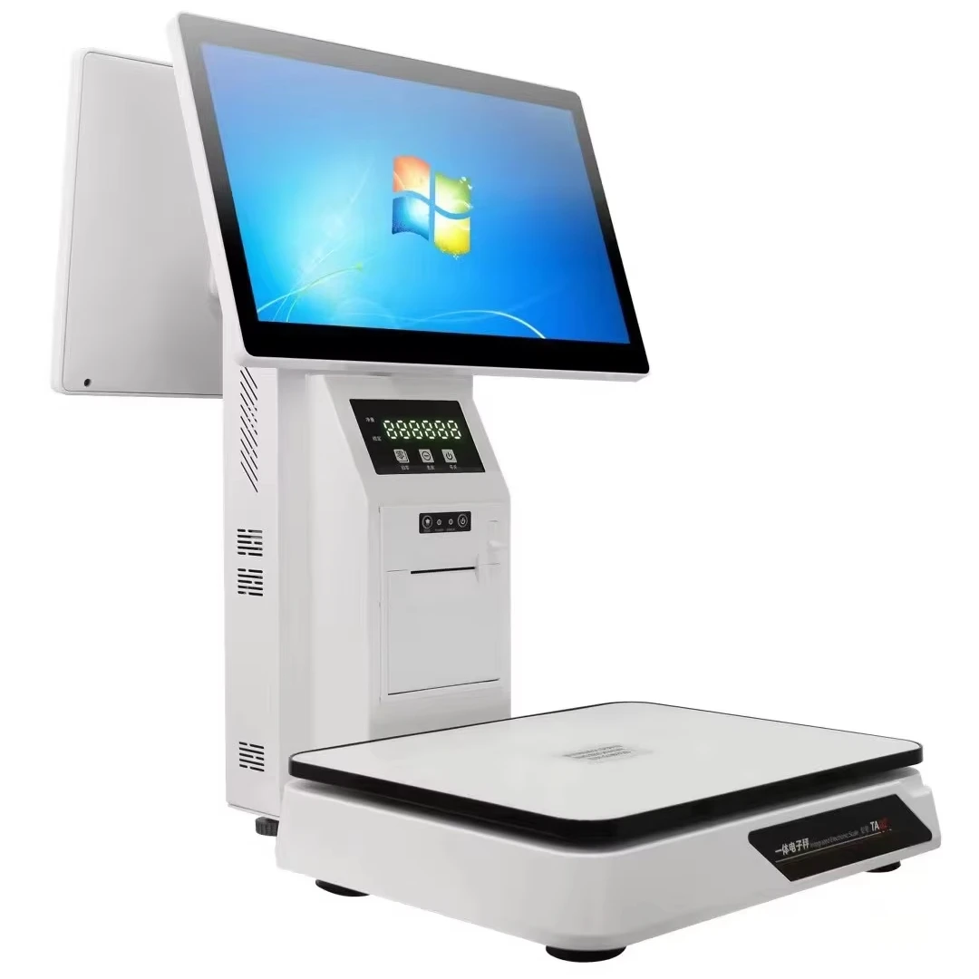Сенсорный экран POS кассовые Весы двойной экран сканирующий принтер супермаркет торговый центр розничная продажа весы POS электронные весы