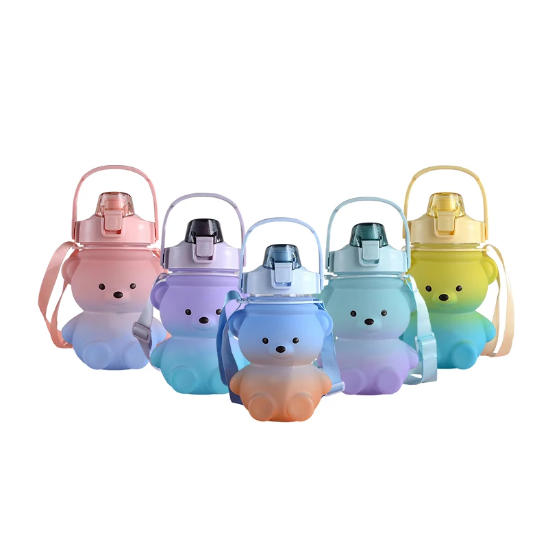 Оптовая продажа, милые персонализированные детские бутылки без бисфенола А, матовый медведь, панда, бутылка для воды, пластиковая детская бутылка для воды с крышкой из соломы