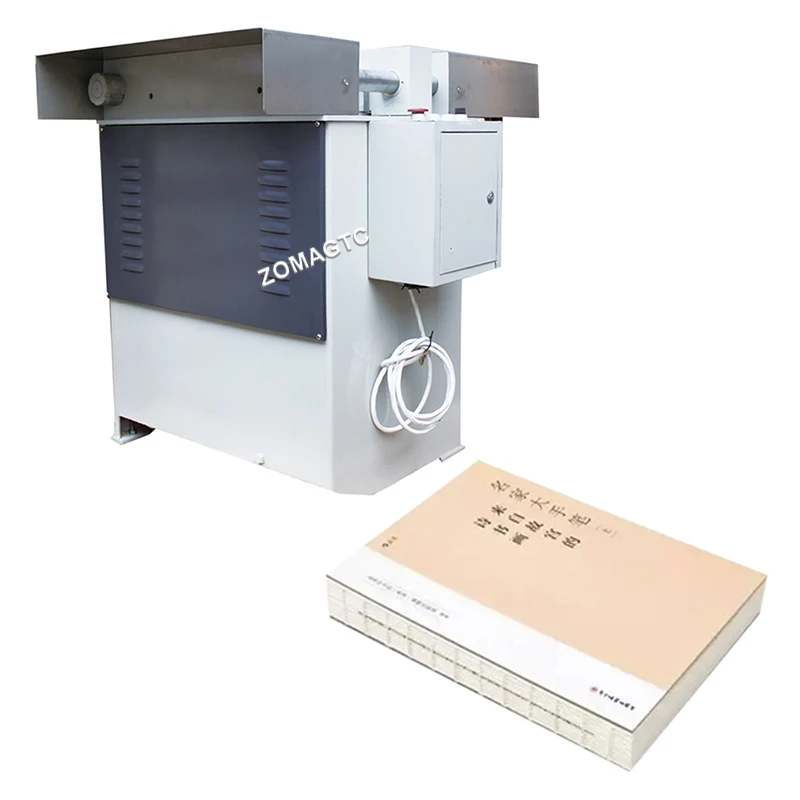 The middle warp plate of the book shell is pressed to produce a circular arc that matches the thickness of the book core, which is conducive to the nesting with the rounded book core.It is also suitable for unconventional sizes and personalized round ridge hardcover books, which can solve the problem of multi-variety, small batch and personalized round ridge hardcover book shell production. • Standard with four different arc shapes of the round ridge mold heating and shaping, suitable for different thickness of the round ridge hardcover book production. • Adjustable heating temperature of round ridge mold, dovetail groove structure design. • Bookcase ironing setting time can be adjusted according to demand. • Foot valve controls pneumatic pressure and adjustable pressure. • Replace molds with different radians to match round ridge hardcover books of different thicknesses. • Circular mold with smoother pull-out design, controlled release and fixing via pneumatic positioning leve |