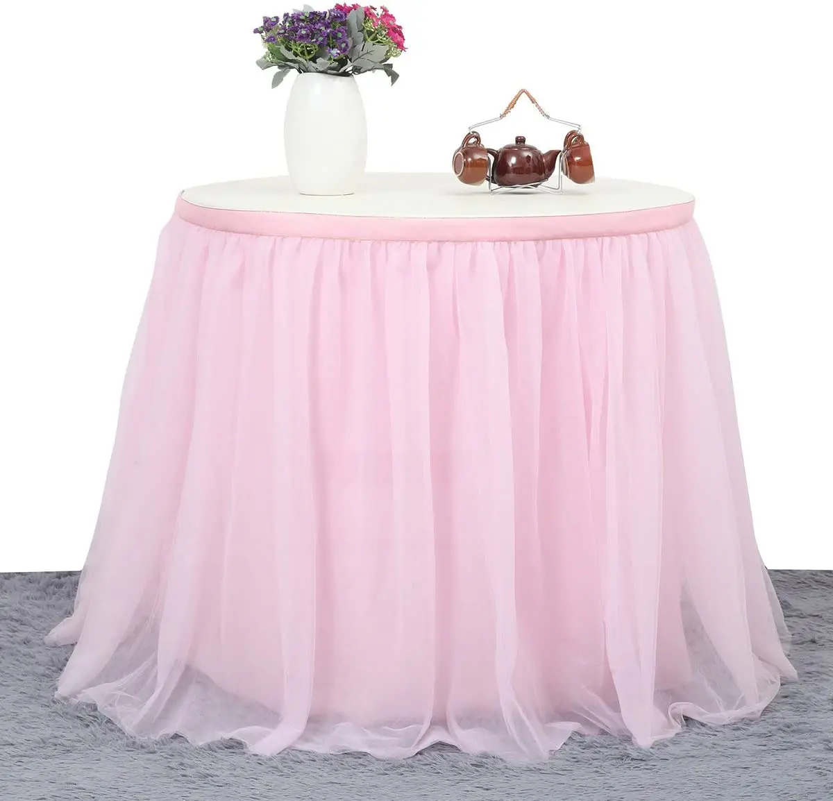 Тюлевая юбка для стола прямоугольная или круглая розовая Пастельная юбка-пачка скатерть 6