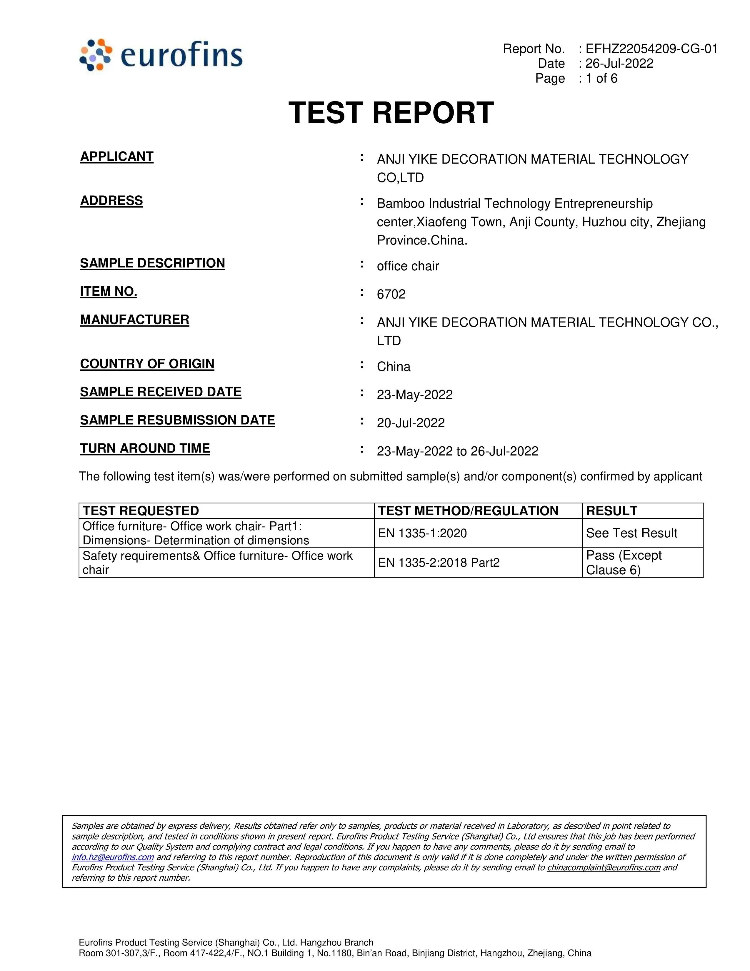 Place of factory | Anji, Zhejiang | Packing size | 70*29*59CM |