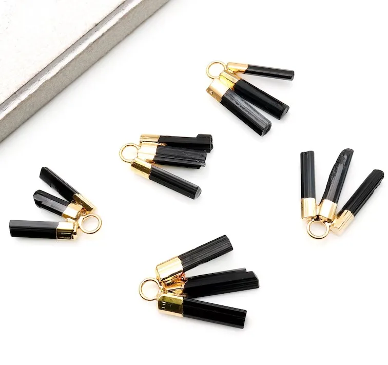 Diy черный турмалиновый драгоценный камень 3 прутка ожерелье кулон 26x16 мм слитки золото Гальваническое Изготовление ювелирных изделий поставка оптом 393,46 ₽ - 630,41 ₽