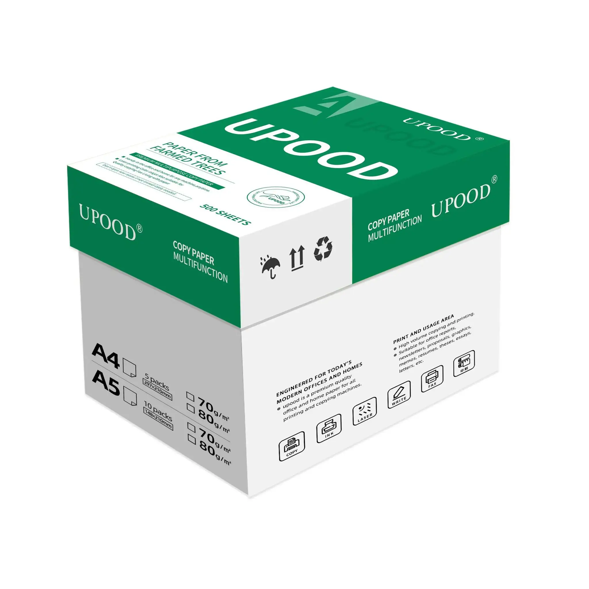 | Material Features | Recyclable | High Brightness and opacity Dimensional Stability and Stiffness Improved Electrostatic Properties Offers you absolute copying freedom Compatible for both sides printing and scanning | — | Bio Degradable,Natural,Recyclable |