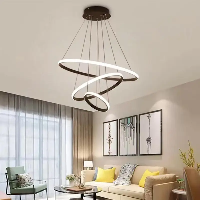 Современный светодиодный подвесной светильник для гостиной 3 круга акриловая Люстра внутреннего освещения круглый металлический
