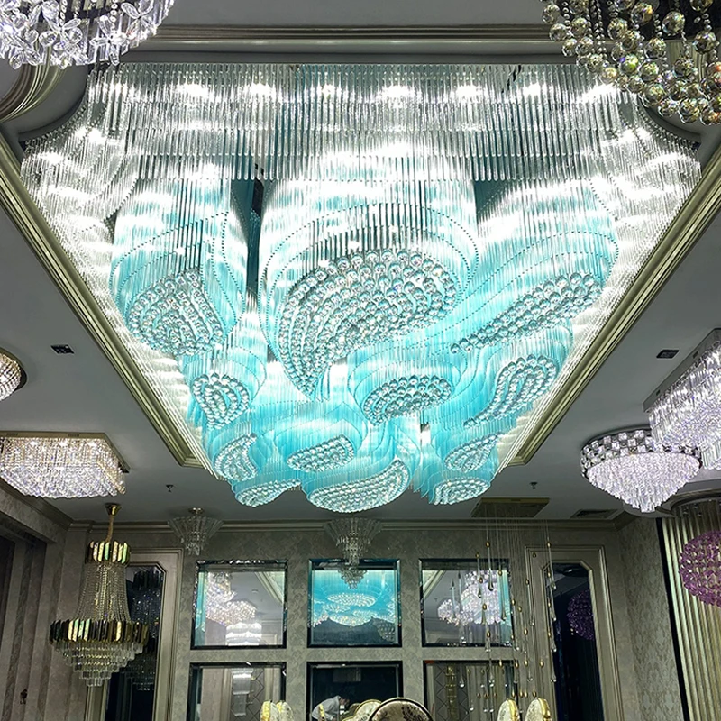 Индивидуальный роскошный современный проект потолочный светильник для внутреннего отеля виллы лобби декоративное освещение квадратная светодиодная Хрустальная люстра