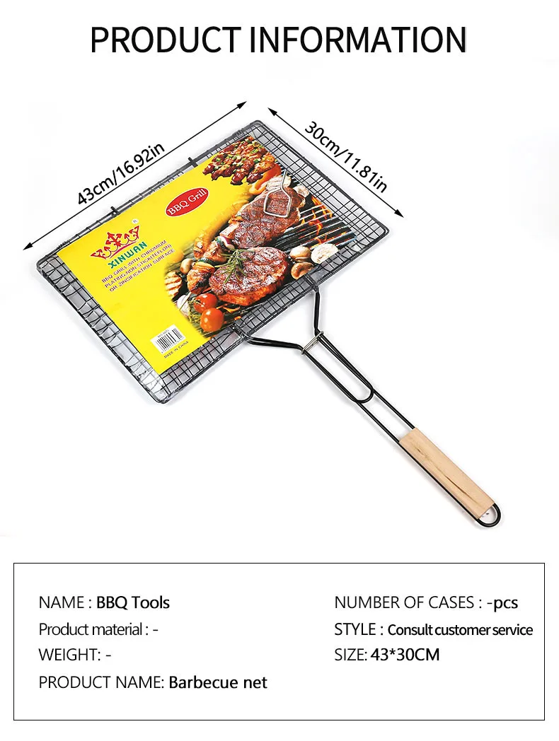 stainless steel 304 barbecue grilling net bbq wire mesh Square Grill Hamburger Grid Vegetable Basket